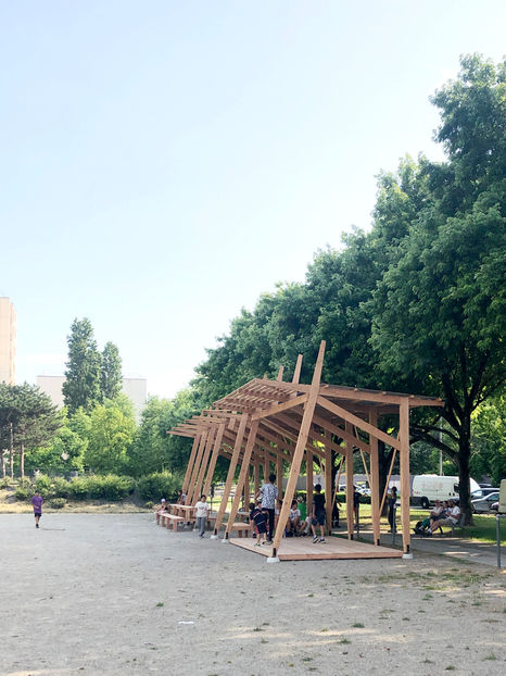 En préparation d’un prochain renouvellement des espaces extérieurs du Prainet, la Ville souhaite pouvoir mobiliser les habitants sur ces questions. L’aménagement du terrain central, entrée du quartier, est une première phase à taille humaine. Cet espace étant déserté depuis plusieurs années, l’objectif est de lui redonner une seconde vie, en le rendant accessible à une variété de publics (filles, femmes, personnes âgées notamment). Après plusieurs ateliers d’idéation et de conception autour d’une maquette, nous avons organisé une semaine de chantier de préfiguration en avril 2023 afin de tester plusieurs usages à différents endroits du terrain : faire connaître le projet auprès d’un public large, observer, discuter et mieux comprendre ce territoire. Ces échanges nous amènent à proposer la construction participative d’un espace de convivialité ombragé. Cette première structure sera testée lors des événements estivaux pour être complétée et réadaptée au besoin à l’automne. La suite du projet sera rediscutée à l’automne afin d’avancer au fur et à mesure des besoins et envies des habitants.